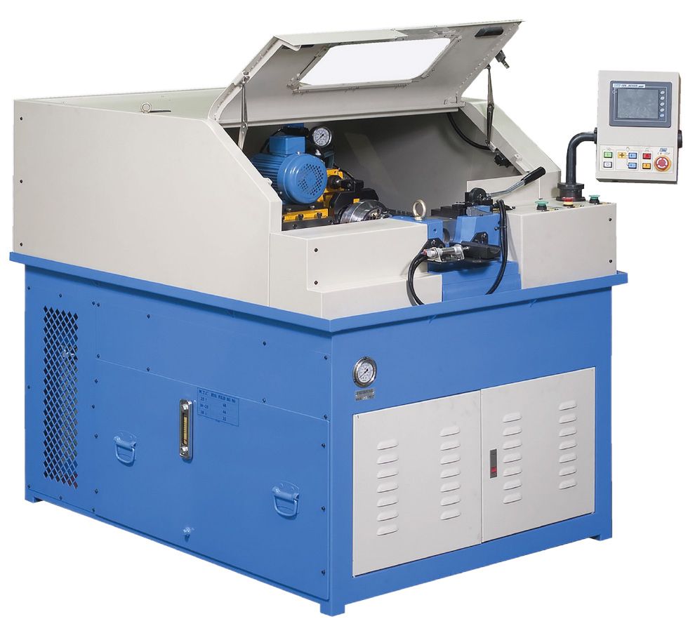 ER30-5 Automatic Combined Linear and Rotary Forming Machine 5 Forming Heads: 4 linear + 1 Rotary + (1 Drilling or Grinding). Jaw, Linear Forming and Hydraulic Rotary Forming. Heads with Servo Motor movement. Hydraulic Forming Capacity: 10.0 Ton