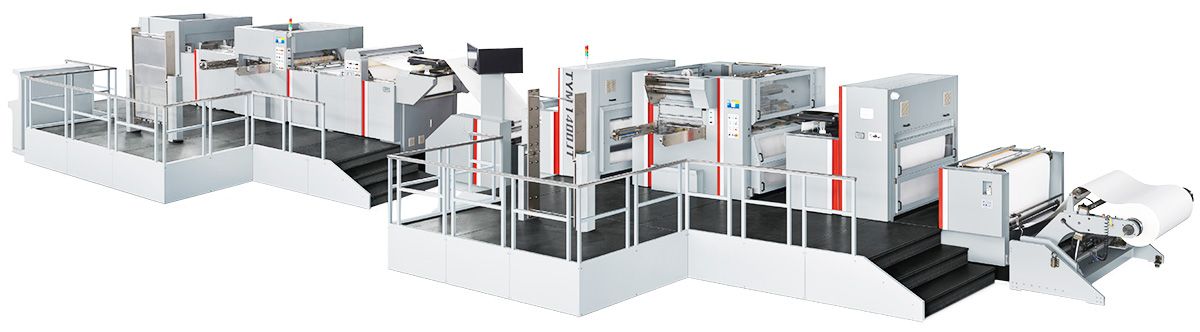 Die cutting and hot stamping machines on reels.