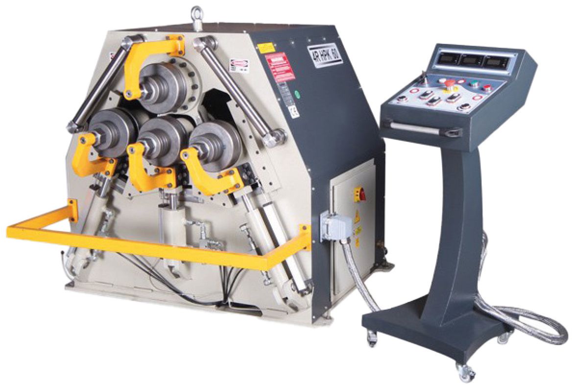Calandra de Chapas 4 Rolos Hidráulica HPK Rolo superior fixo | Rolo Inferior movimento vertical Rolos laterais inferiores móveis com movimento orbital Eixo Rolo Superior: Ø70 ~ Ø90 ~ Ø110mm