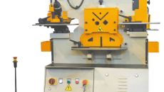 Prensa Metaleira Hidráulica 5 Estações 1 Operador Capacidades: 45 ~60 ton Funcionalidades padrão: Furação por Puncionamento, Corte e Barra Chata, Corte de Cantoneira, Corte de Chapas Grossas, e Corte de Rasgos. Capacidade para Corte de Perfil U, Perfil I, Perfl H, e Perfis Especiais.